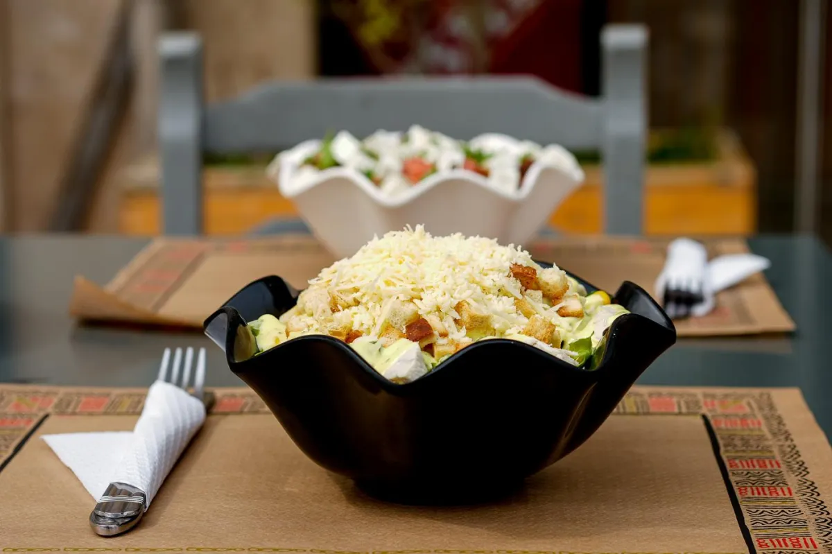 Σαλάτα με φρέσκο μαρούλι, κρουτόν, καλαμπόκι, φιλετάκια κοτόπουλο, κεφαλοτύρι & σως Caesar`s